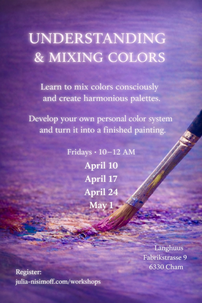The course takes place in a small, focused group, allowing space for personal guidance, reflection, and creative depth. It is open to adults of all levels — whether you are rediscovering painting or deepening your existing practice.